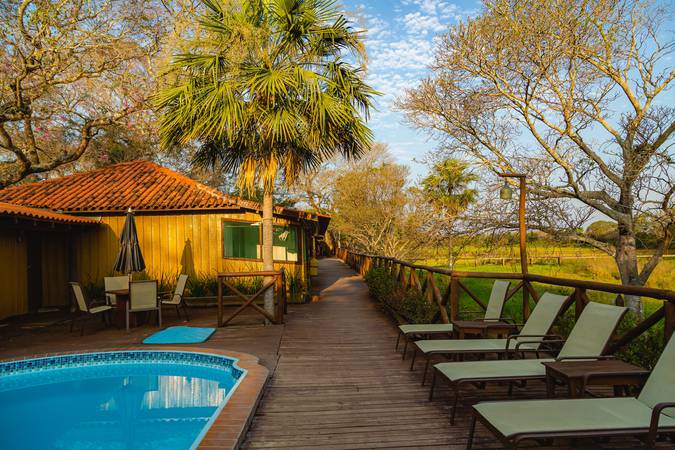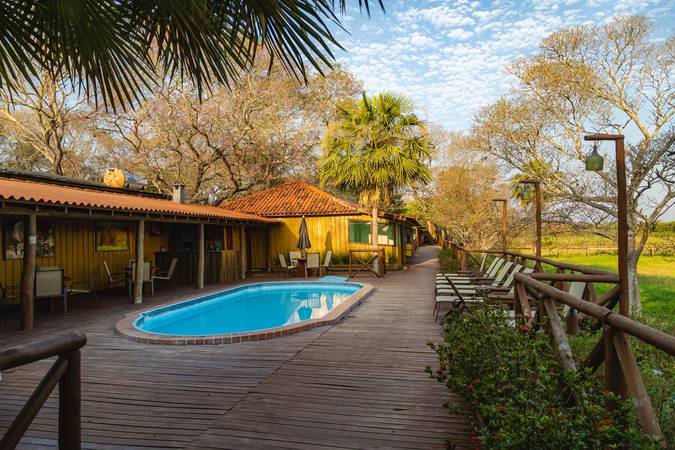 Relaxe no deck da piscina ao ar livre. Curta à beira-rio em redes e balanço. Explore o Pantanal em passeios incríveis por terra e por água. Durma sob a luz das estrelas em um acampamento selvagem. Desfrute de refeições deliciosas com sabores pantaneiros.