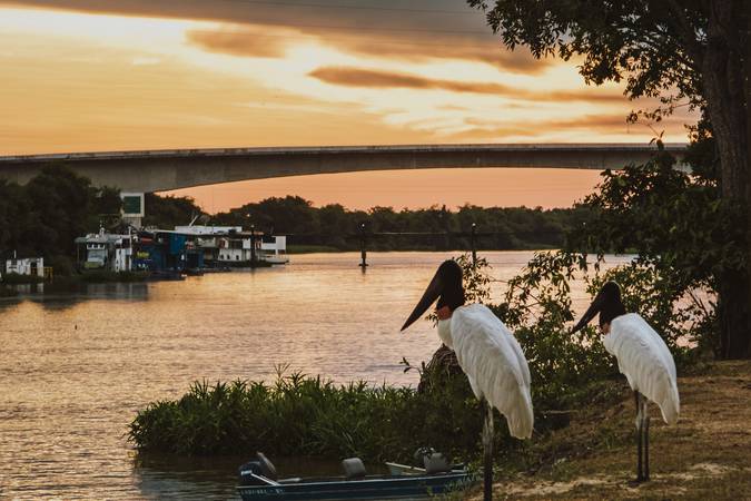 Dê uma pausa e aprecie o pôr do sol no rio Miranda.